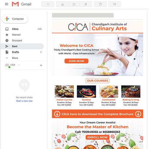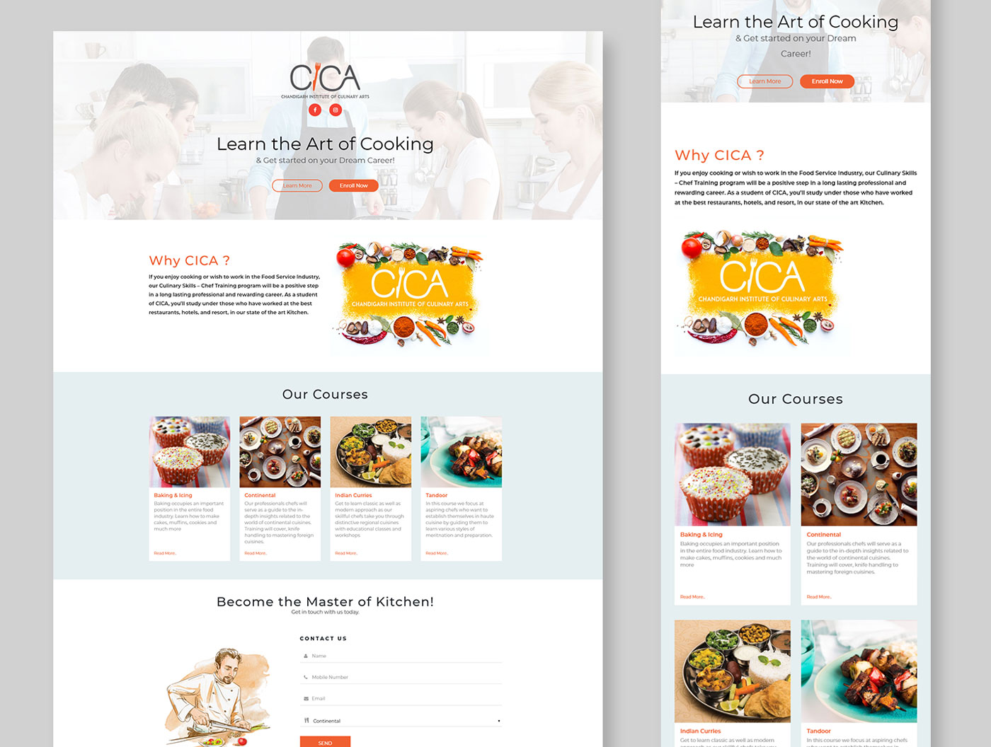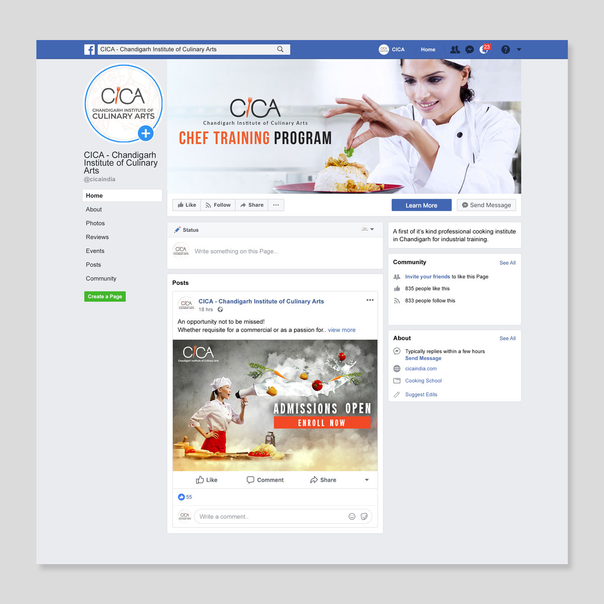 CICA - Chandigarh Institute of Culinary Arts is a prestigious institute which offers a wide variety of culinary programs that focuses on quality of education. As it’s a completely new brand we had to start from scratch, building a unique brand identity, creating online buzz, designing all the print & digital stationary etc.