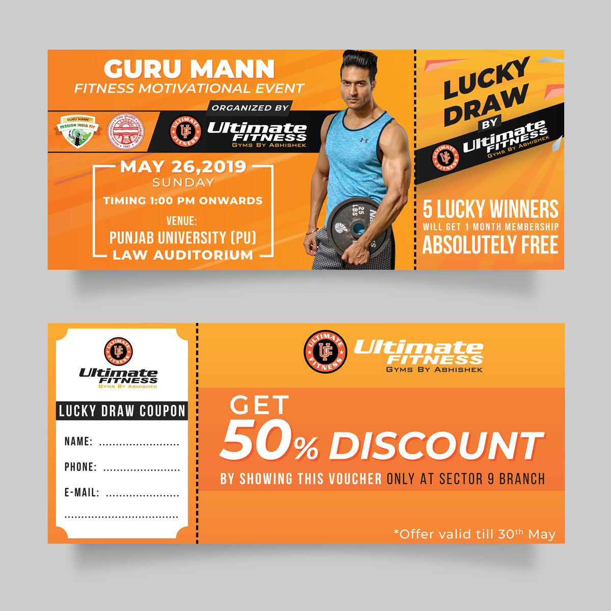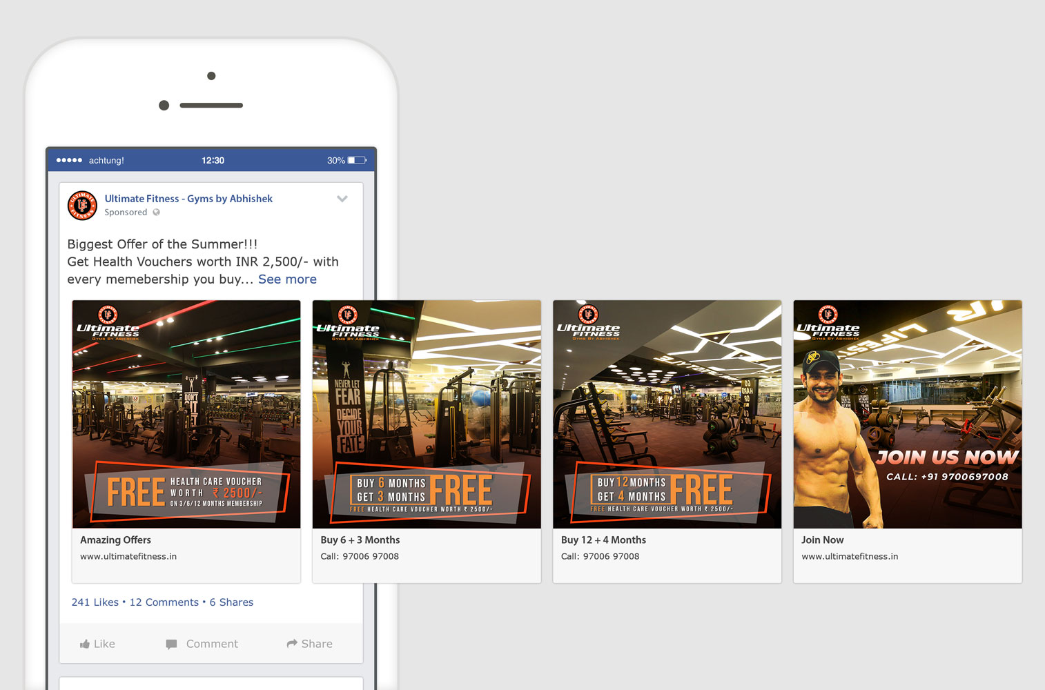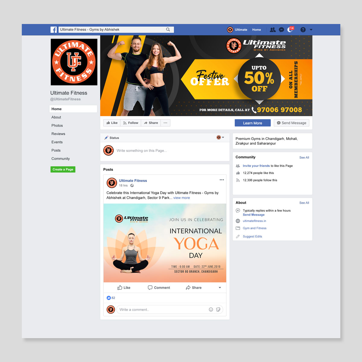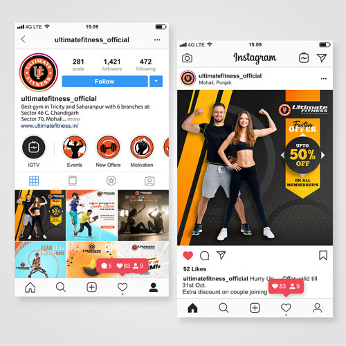 Ultimate Fitness - Gyms by Abhishek is one of the fastest growing gym brands in north India. The brand identity was there, so we started to build upon that and improve the designing and marketing approach.